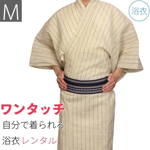 浴衣 男 レンタル セット M メンズ ベージュ 縦縞 ワンタッチ 9094 レンタル着物みやこもん ヤフー店 通販 Yahoo ショッピング